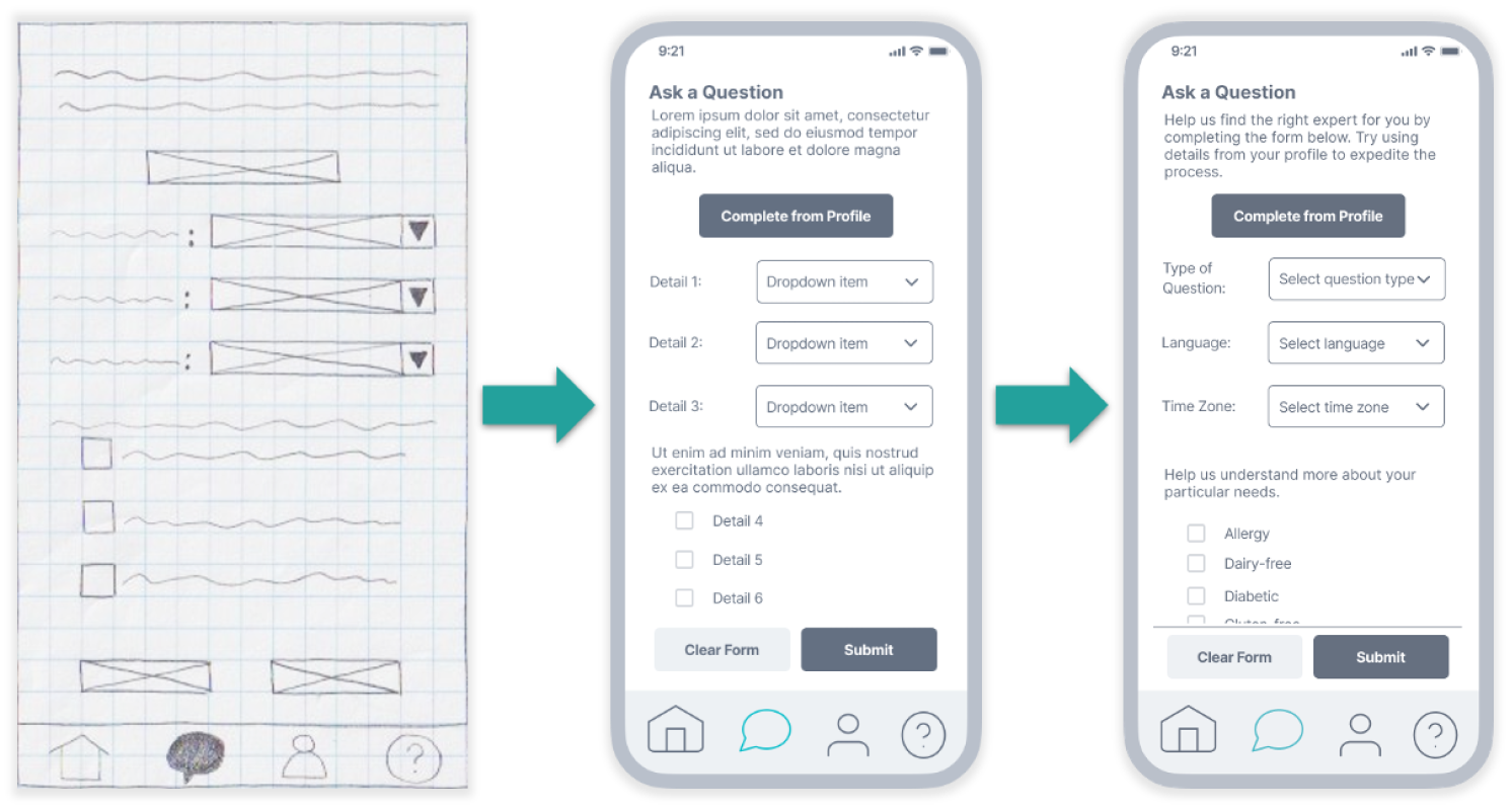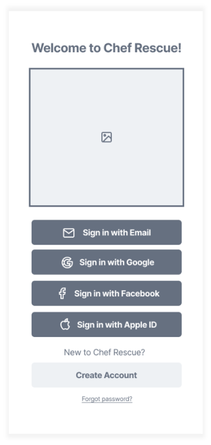 Pen and paper was used to create wireframes and a low-fidelity prototype. This helped in visualizing Chef Rescue’s main features and establishing the app’s look and feel. The prototype was then upgraded to a mid-fidelity, then high-fidelity prototype in Figma.