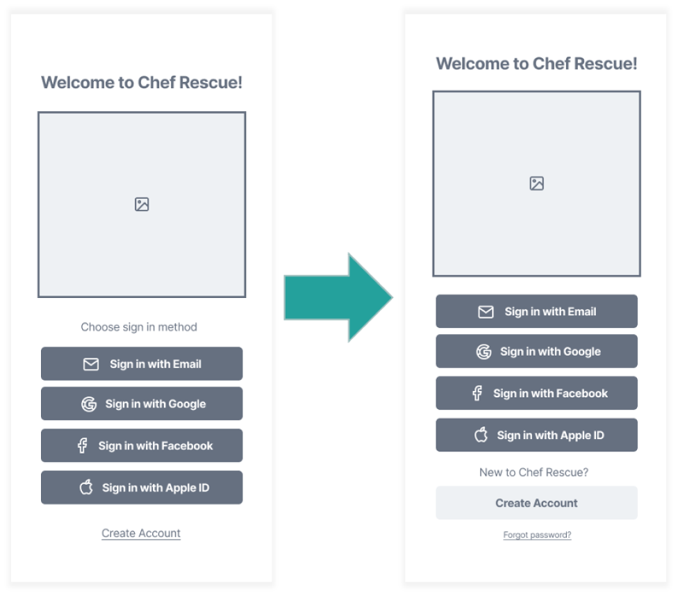 User errors during usability testing suggested that the layout of the log in and sign up screen is not as intuitive as intended. A preference test was conducted remotely using UsabilityHub. There was a total of 10 participants who were asked to indicate which sign-in screen they preferred. Participants were given the choice between the recently redesigned sign-in screen or a simplified version.
