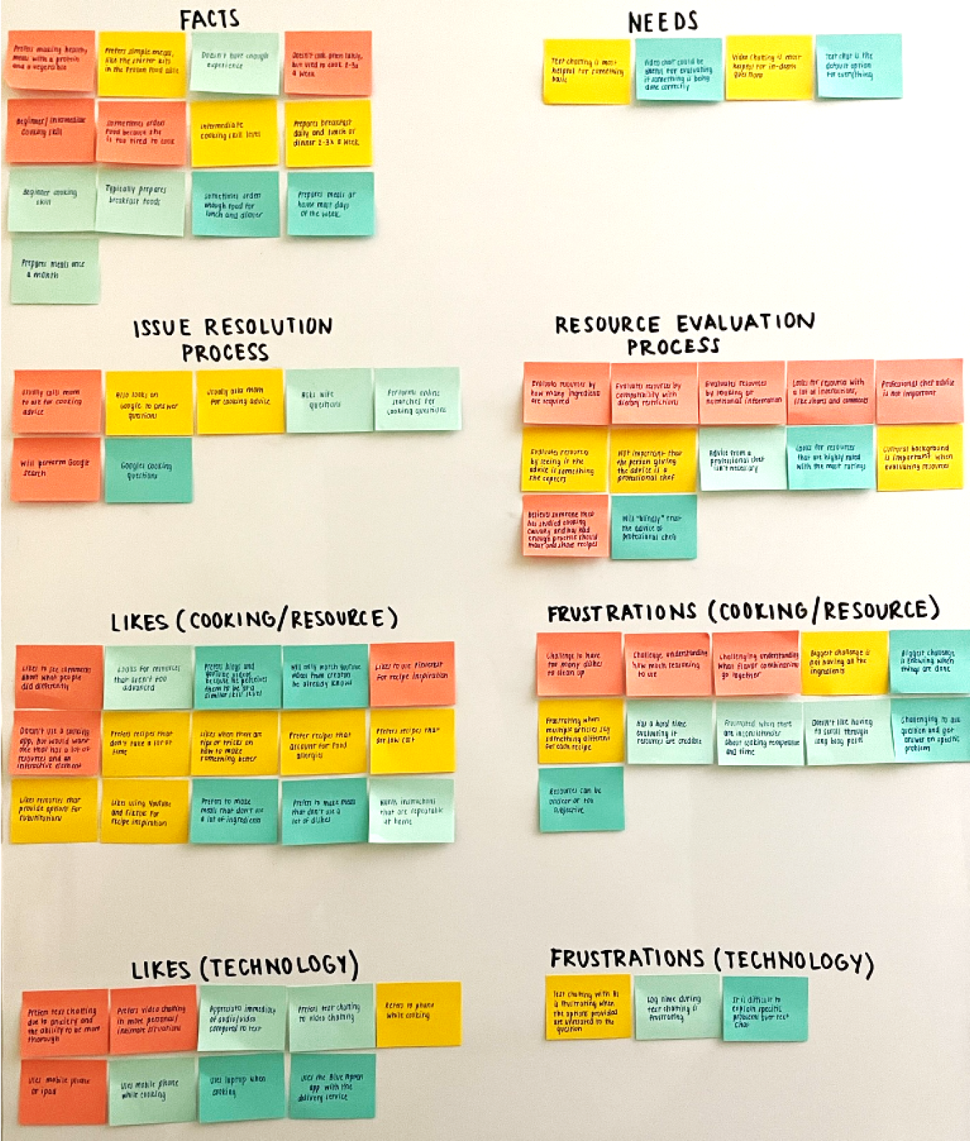 Data from user interviews was organized into eight clusters to reveal common patterns and themes.